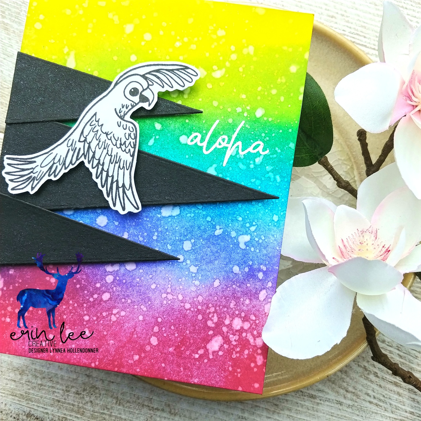I stamped "aloha" from the Tropical Birds Stamp Set and white heat embossed it between the Triangle Nesters dies and added shimmer to each triangle to finish the card. See you soon!