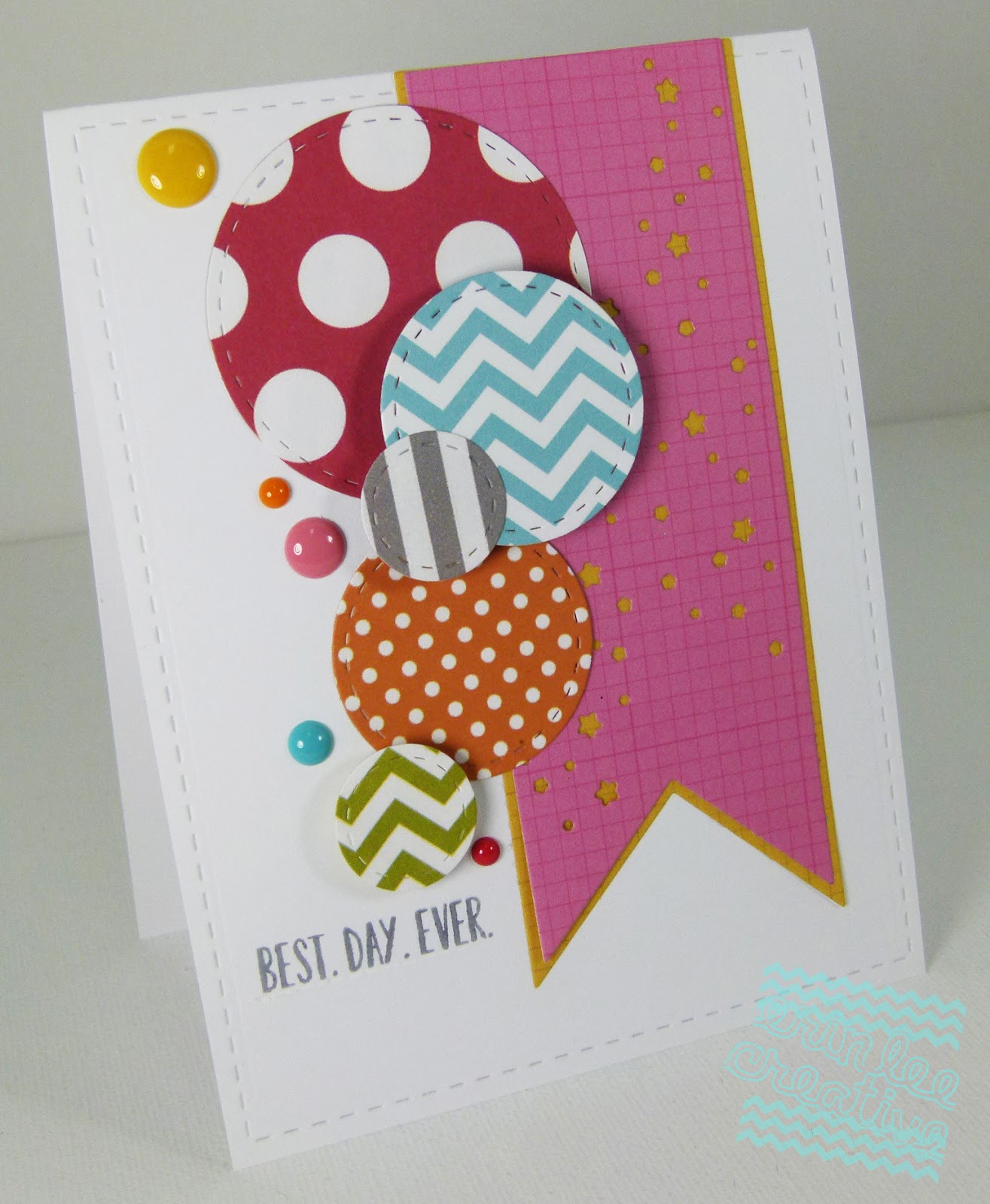 Hello! I made a card tonight for Lil Inker's 3rd Birthday Challenge...whoop! I love Lil Inker's products. I have a few of their dies {but no stamps :(} so I had to get creative with the dies I do have. I used Stitched Circles and Stitched Rectangles for this card, they are SO fun and I reach for these dies frequently.