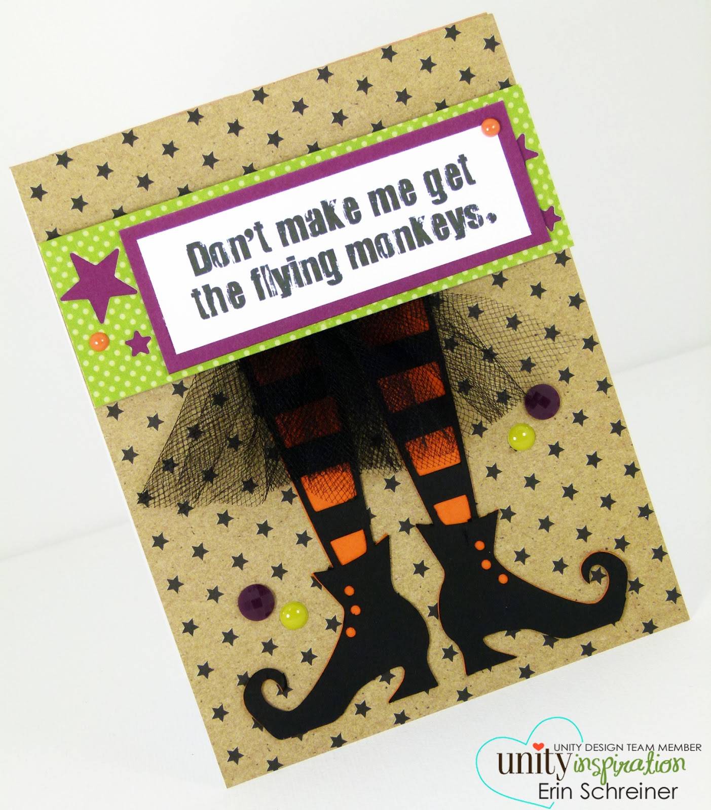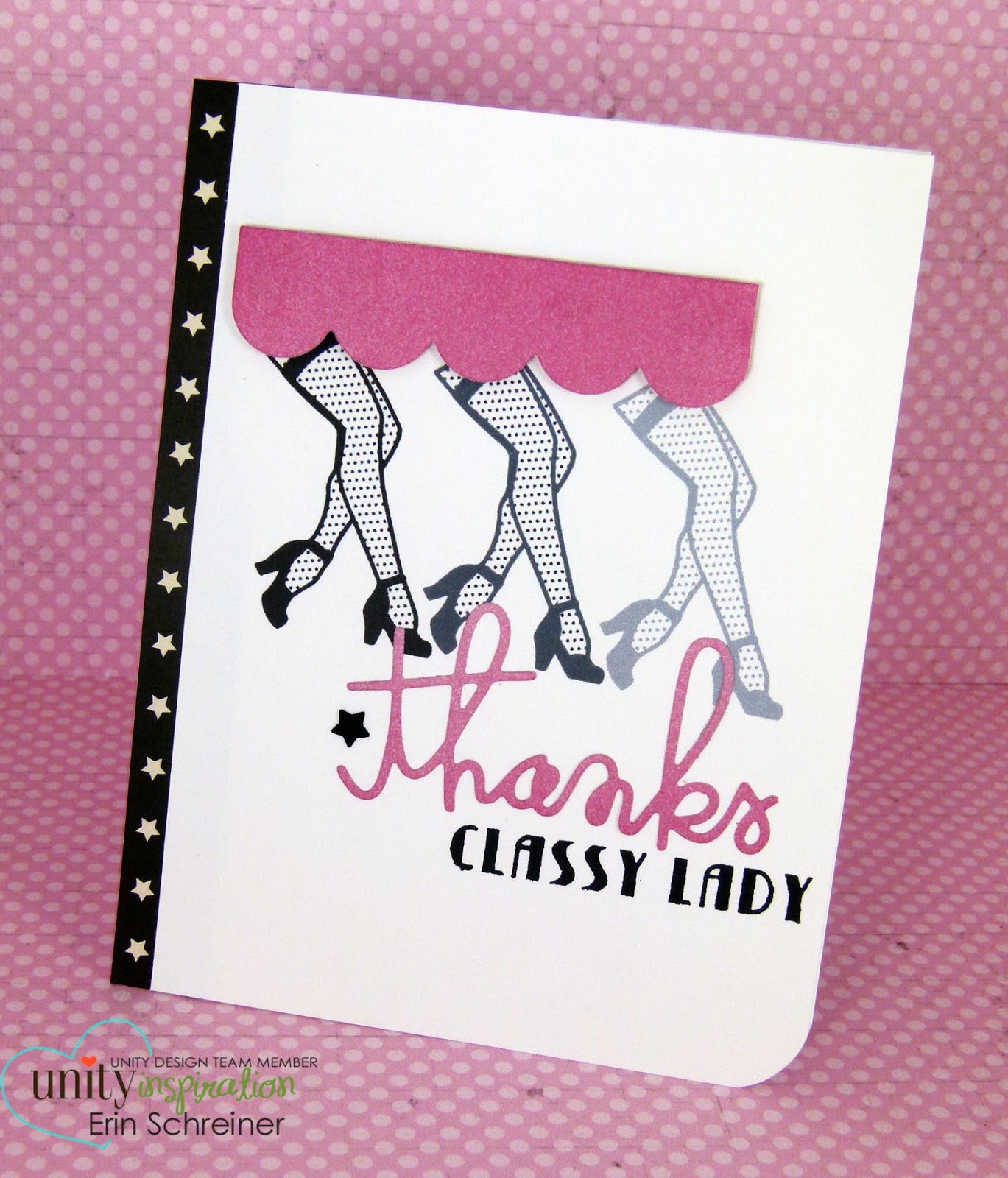 Next at Unity, they are releasing these fun teeny tiny stamps. This weekend, they are just $2 and the images are adorable! Quality red rubber for a low price. This one happens to be my favorite, check out those LEGS! {What's with me and the leg cards today? odd.}