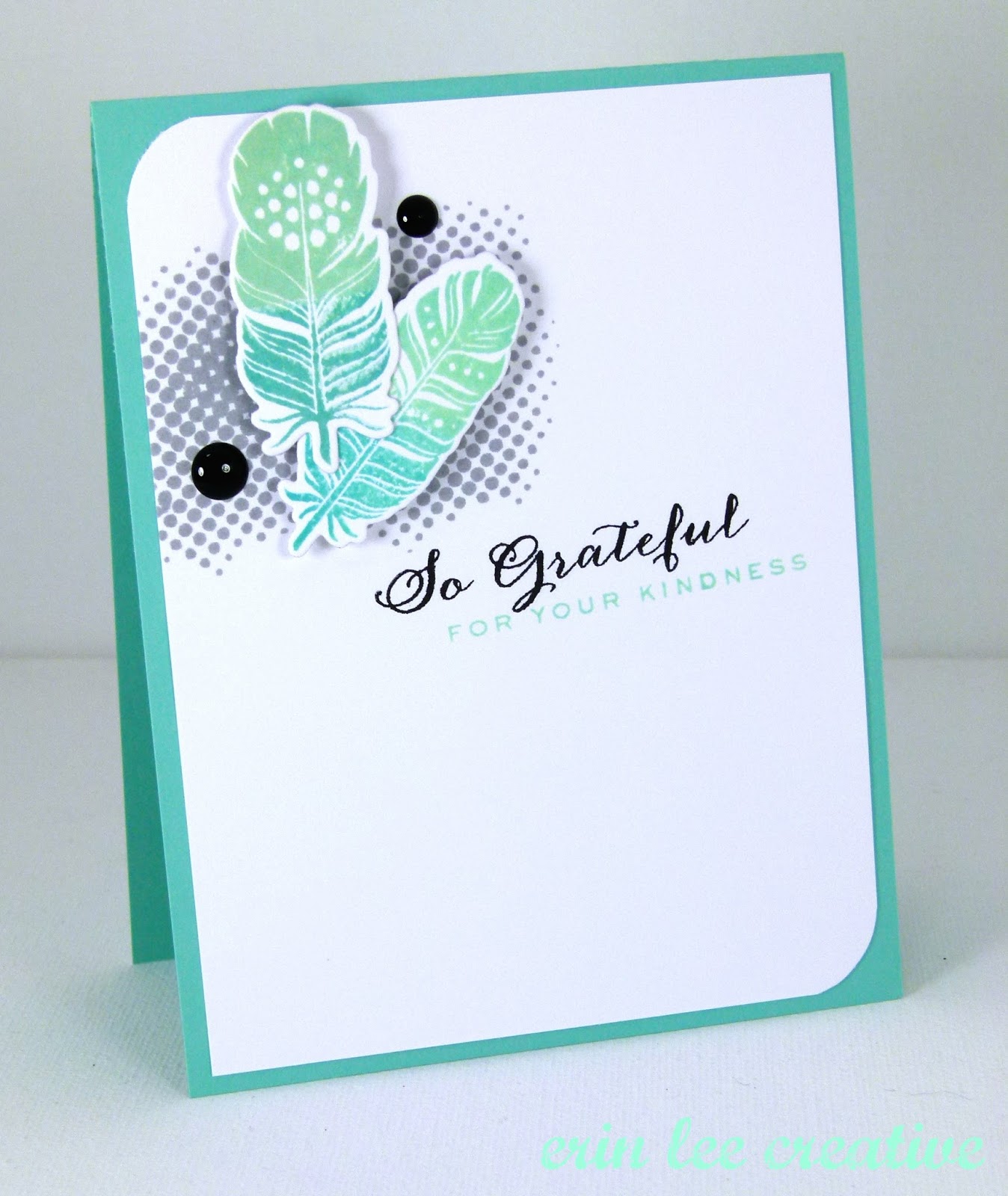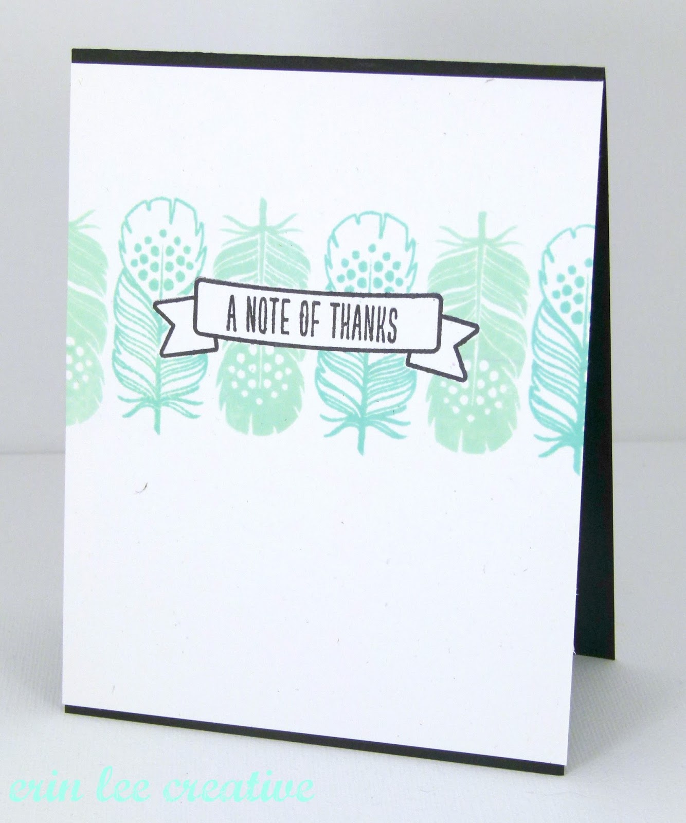 And for this simple one, I stamped the banner and masked it before stamping over the mask with the feathers in Hero Arts Shadow Inks.
