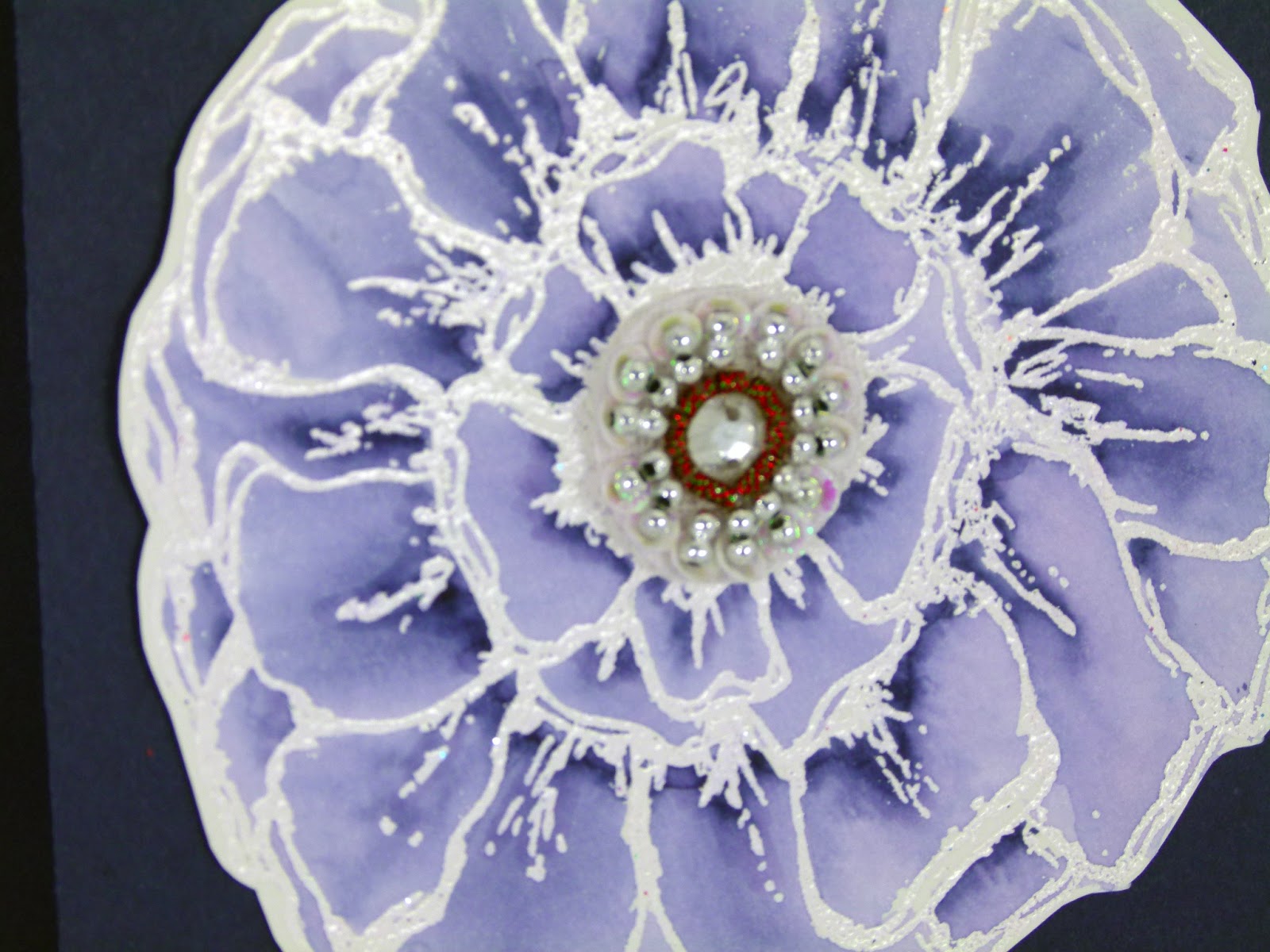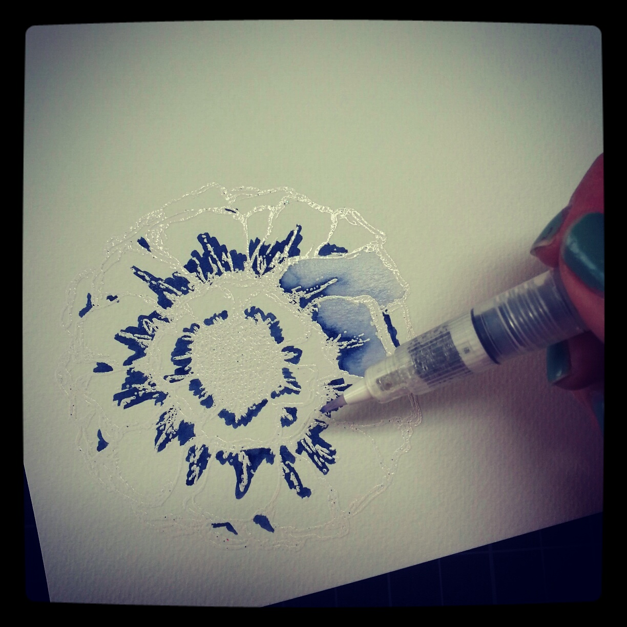 I then took my Distress Marker in Chipped Sapphire and started coloring in what I thought the darkest part of the flower would be in real life. Next, I took my water brush pen and started brushing outwards, to get this effect: