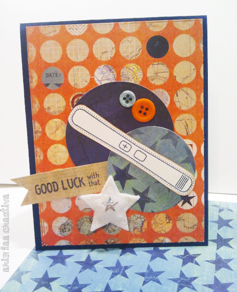 Ohhhhh this stamp just makes me LAUGH. It's just my type of humor. And it's so cute! I wanted to make a "boyish" card using my new Heidi Swapp papers - love this stack, lots of oranges and blues. Love that color combo. Unity stamp can be found HERE.