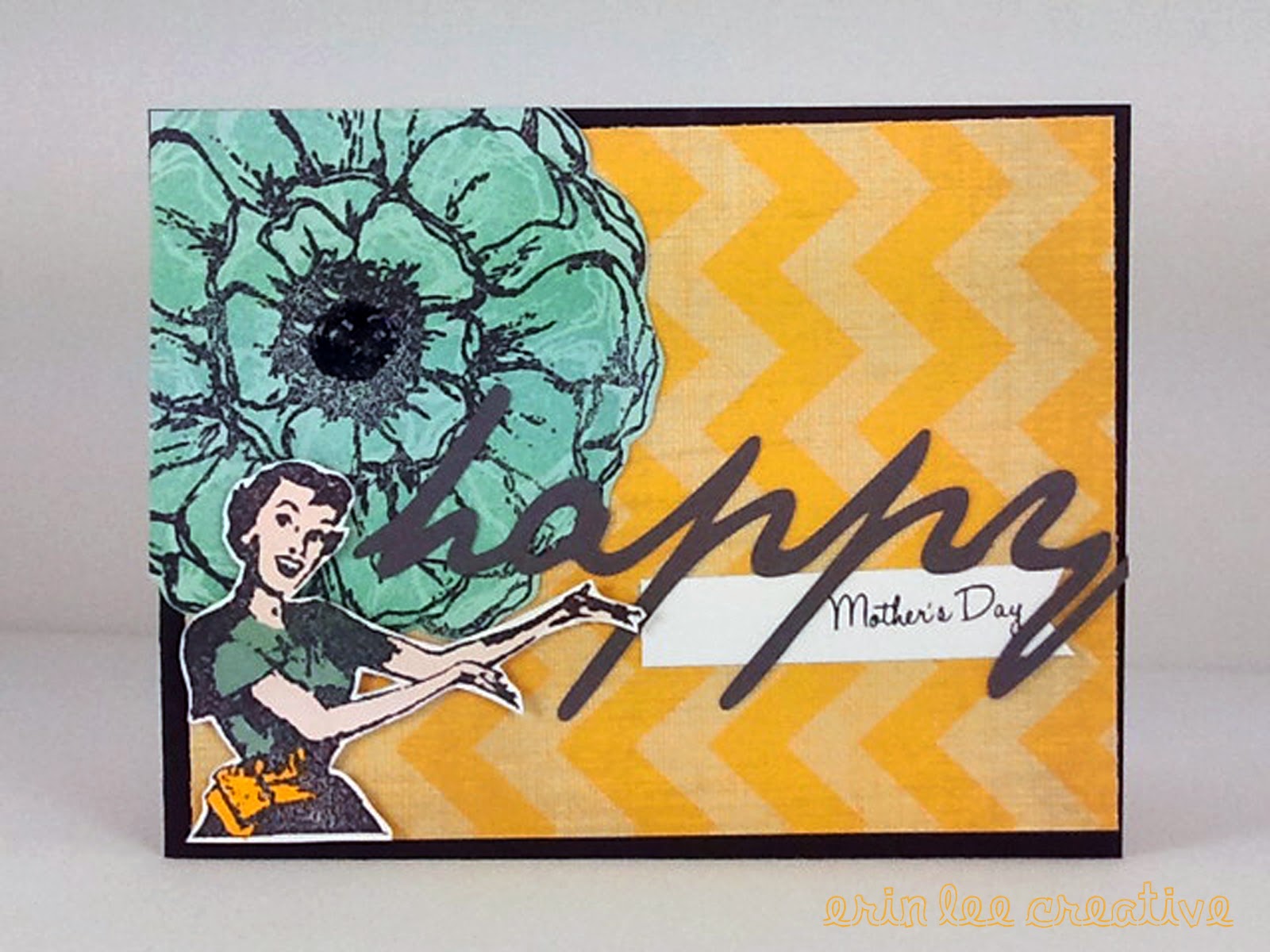 Hi there! Guess what? I am determined to learn how to use the Cameo and all it's cool features. I can't wait to explore this machine more. Today, I created a card for a VERY special mom - my mama. I used my Cameo to create the word happy with a font I already had on my Mac {so no purchase necessary}. I used one of the new Indie Chic stacks from My Mind's Eye andddddd of course, Unity Stamps {flower, retro mom and sentiment}. I am pretty happy with how this one turned out. GO GO CAMEOOOOOO!