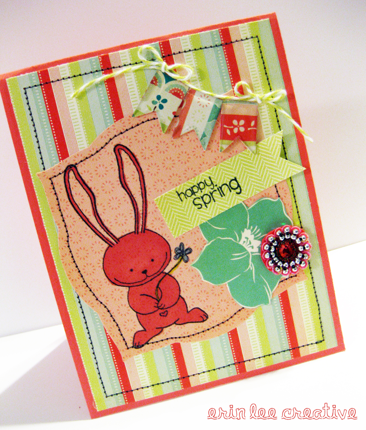 Hi bunnies! Popping in today to show you a card I made for Easter using Unity Stamp Company's Sweet Thoughts of Spring stamp set. I even broke out my sewing machine for this one! I need more thread colors - mission for the week.
