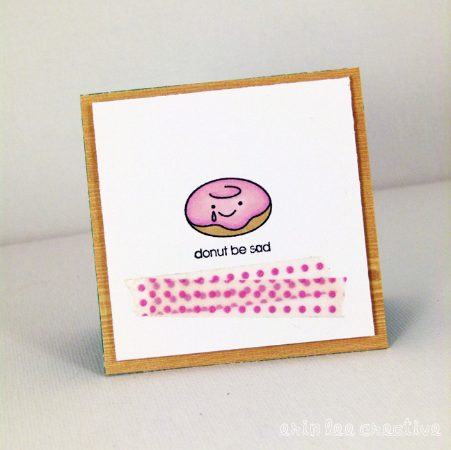 This whopper of a card is 2.75" x 2.75". Bitty fun! I love donuts. Especially strawberry frosted ones. mmmmmhmmm.