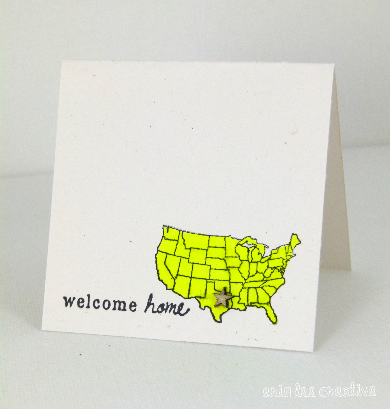 I colored the United States with Promarkers Neon Yellow. Stamped a Unity sentiment on and of course, I had to put the little Studio Calico wood star on Dallas ;)