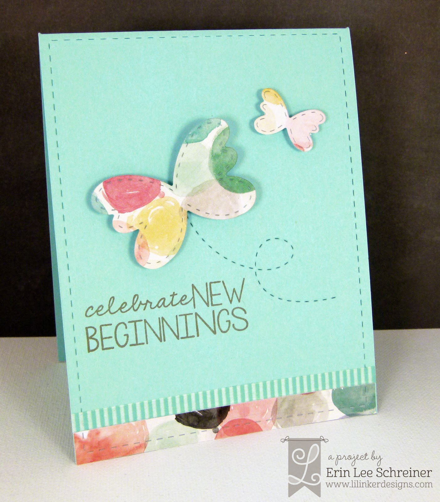 For this spring card, I used the new Stitched Butterflies die set as well as Spring Sentiments and Stitched Rectangles. I seriously just LOVE the detail Laura puts into her products. Like that flutter line? Brilliant! Something so little adds so much perfection to cards.