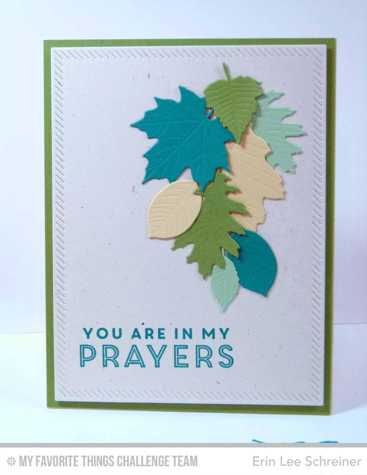 Hey guys! Time for a color challenge on the MFT Challenge Blog. WHOOP! Hope you'll join us?Tricky one, huh? Here is my take: Die-namics Falling Leaves Die-namics Inside & Out Diagonal Stitched Rectangle STAX LJD Words of Inspiration Primitive Cream Card Stock Gumdrop Green Card Stock Tropical Teal Prestige Card Stock Spearmint Card Stock Lemon Chiffon Prestige Card Stock Tropical Teal Premium Dye Ink Pad InLinkz.com