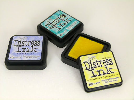 I also got my NEW distress inks in the mail. This spring set from my good friend Timmy (ok, so maybe he has NO idea who I am...) is just gorgeous. My favorite color is teal....so peacock feathers? Amazing. And that YELLOW. It's so BRIGHT. I ink around the edge of the stamp with the yellow (which is actually called squeezed lemonade - so clever).