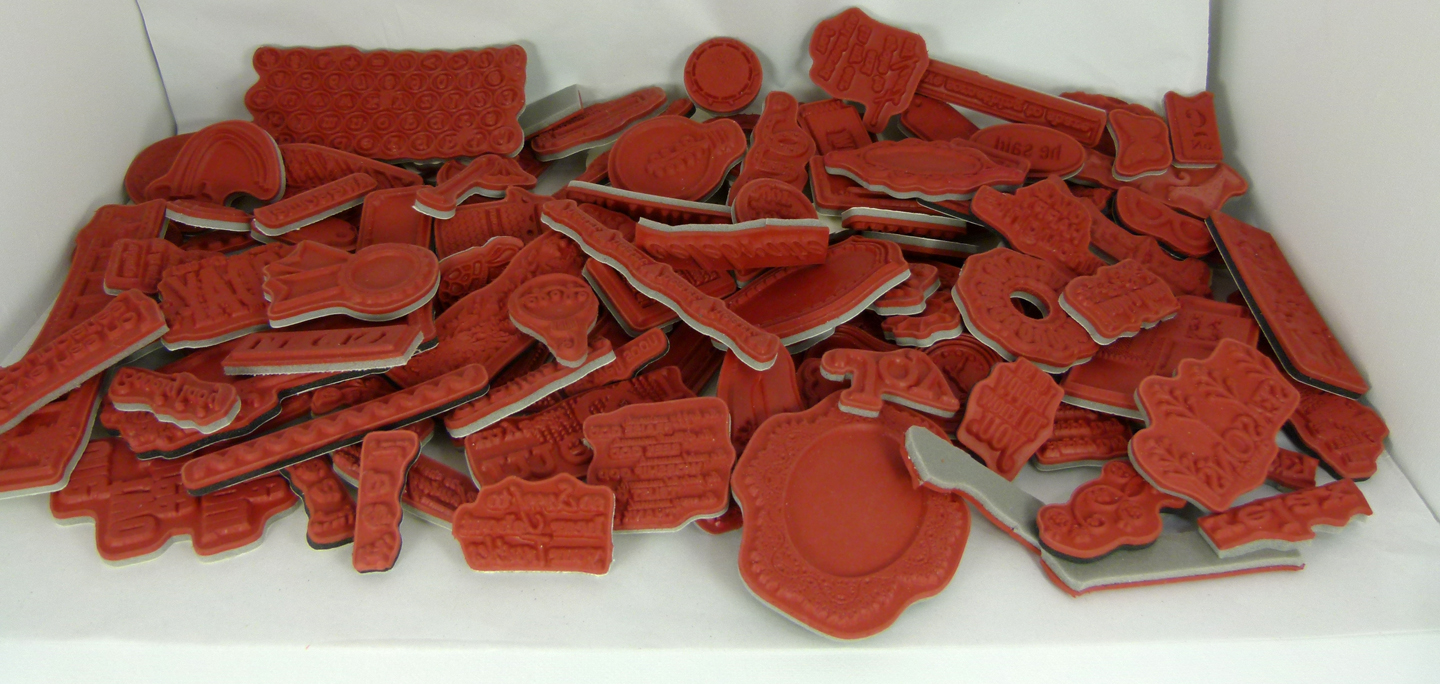 I bought one of Unity's Facebook Insta-sales a few weeks back. I really had no idea what I was "buying" when I wrote "I WANT IT!" but I knew it would be fabulous regardless. And BOY was it EVER! Grab bags of their amazing red rubber. Andrea rocks. A lot of them I didn't have yet, which is a huge accomplishment considering my Unity stash I already own.