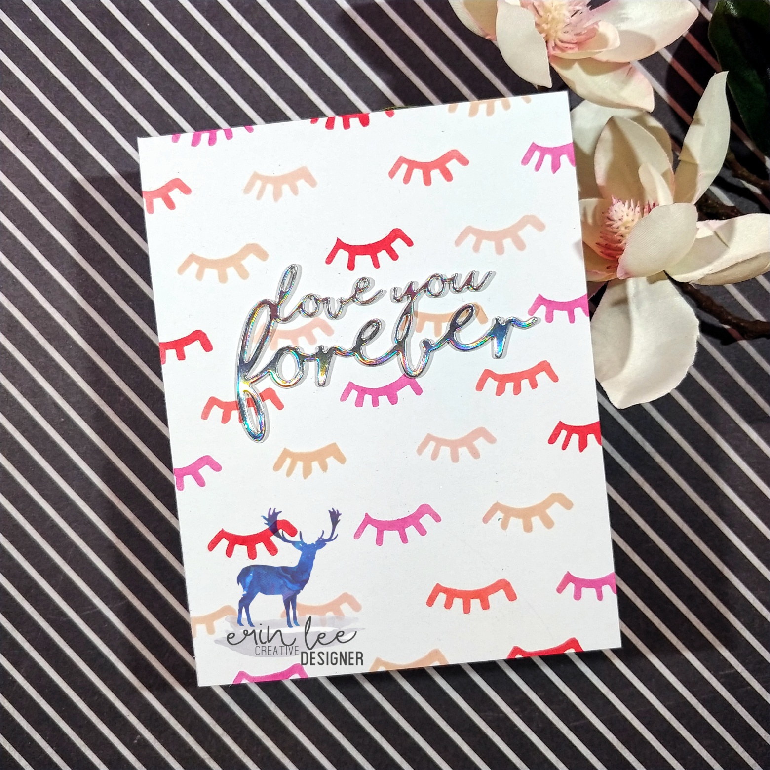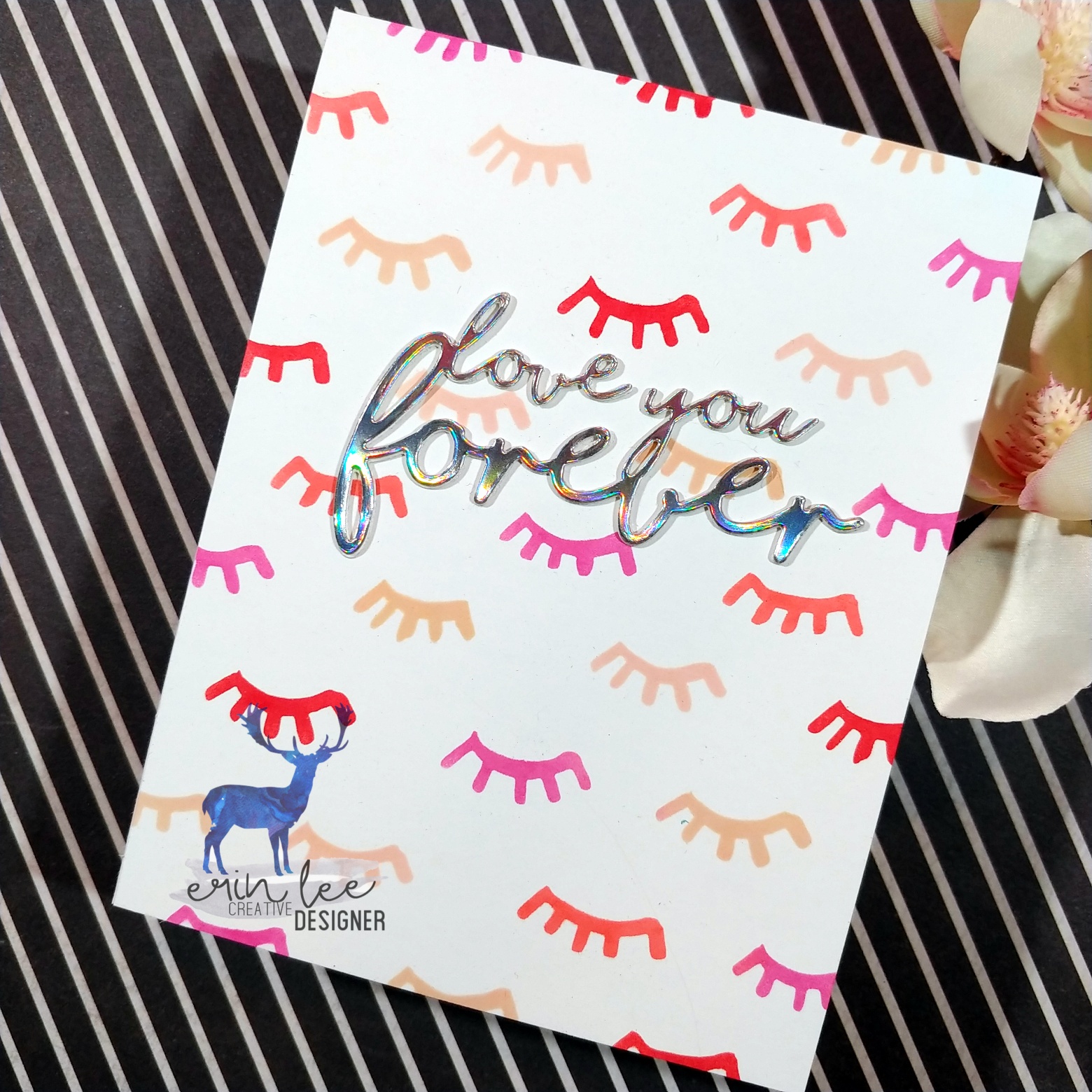I die cut the Love You Forever sentiment die from some Erin Lee Creative Holographic Cardstock and adhered it to the front of my card. It's the perfect shiny touch to finish off this card! Thanks for joining me!