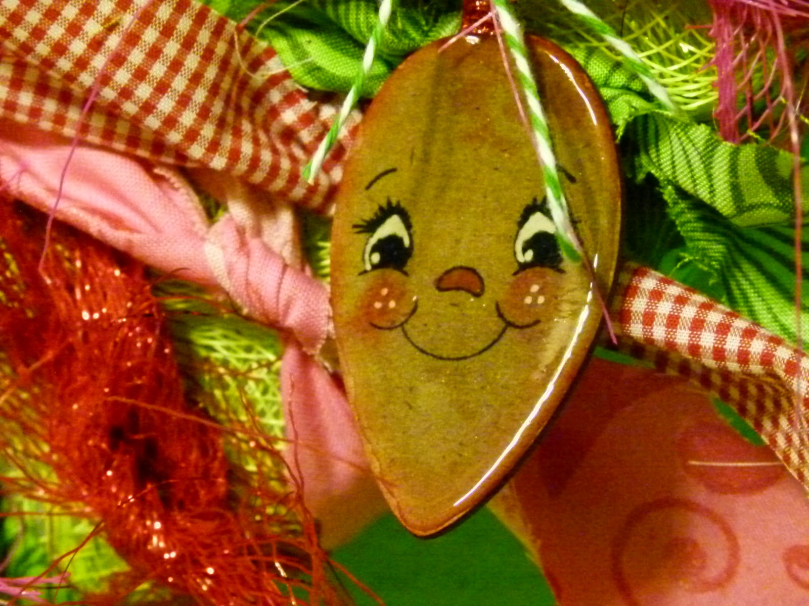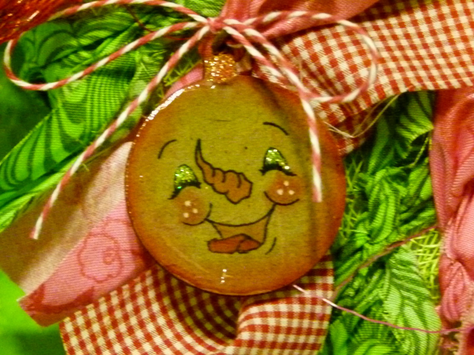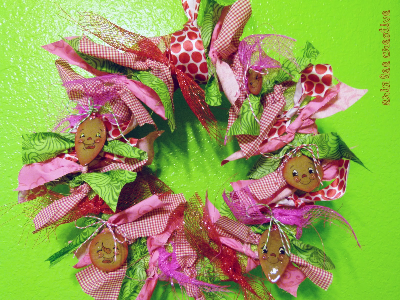 This week, the challenge is to use fabric! I love incorporating fabric into my paper art projects. It's a great texture combination, whether it be flowers, trim or strips. This week, I created a holiday wreath for my daughter's room. It's made out of scrap fabric, ribbon, a styrofoam wreath and of COURSE some Peachy ornaments.