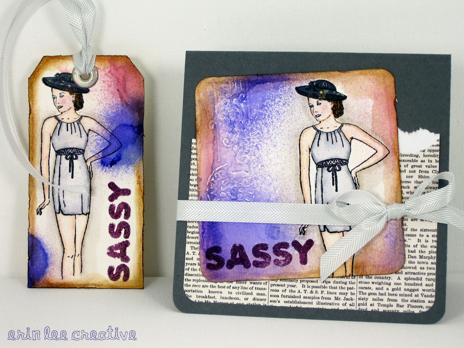 Hi there peeps! Posting a little set today I created using Unity Stamp Company's new Poised & Pretty set. Have I mentioned how much I love vintage girls? I LOVE them. I knew this set had to be mine the minute I saw it. I used my Tim Holtz Distress Markers and Glimmer Mist for this card and tag set.
