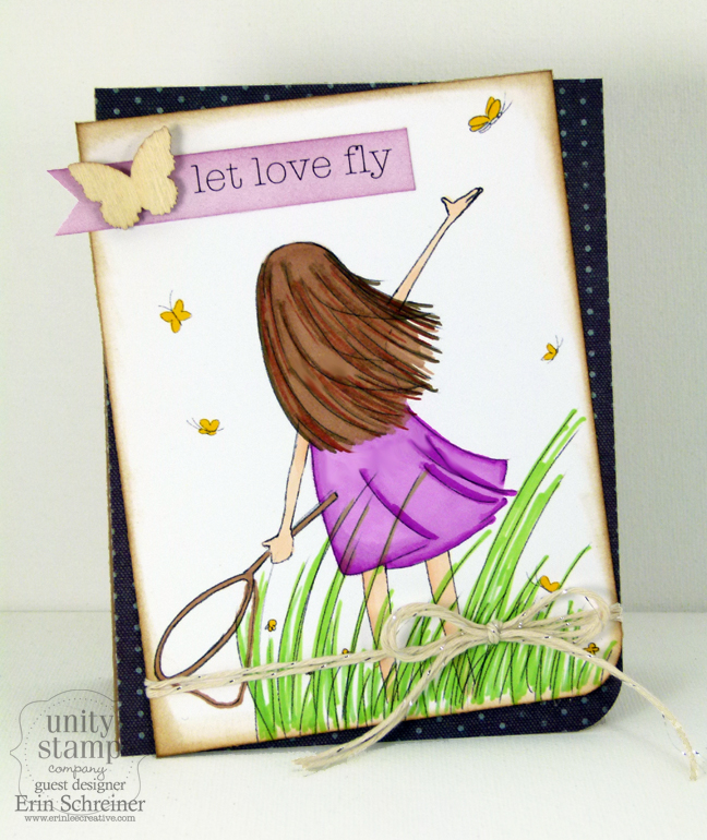 Here is the card I created with Let Love Fly set. I love that her sets are so simple. It just takes some coloring and the card is basically done because the images are just so beautiful standing alone.