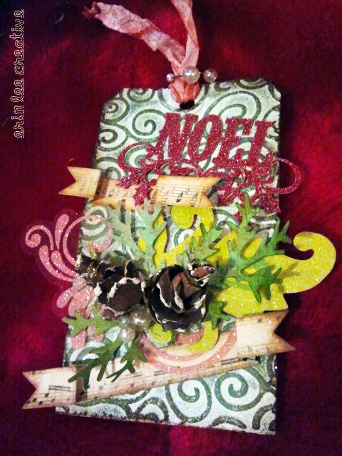 Quite a bit different, but that's ok - it's mine! I found the Noel in the Silhouette library and cut that with my brand spankin new Cameo on red glitter paper. I also just LOVE this new Pinecone die! You can create beautiful roses from it too. Who knew?