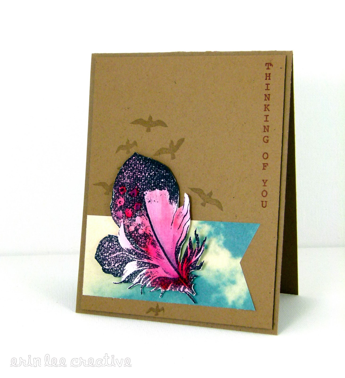I never seem to have enough thinking of you or sympathy cards, so this one is going in my stash. I love the tail feather set. I used watercolor paper and Tim Holtz Distress Markers. Fussy cutting this thing was not real easy. haha!