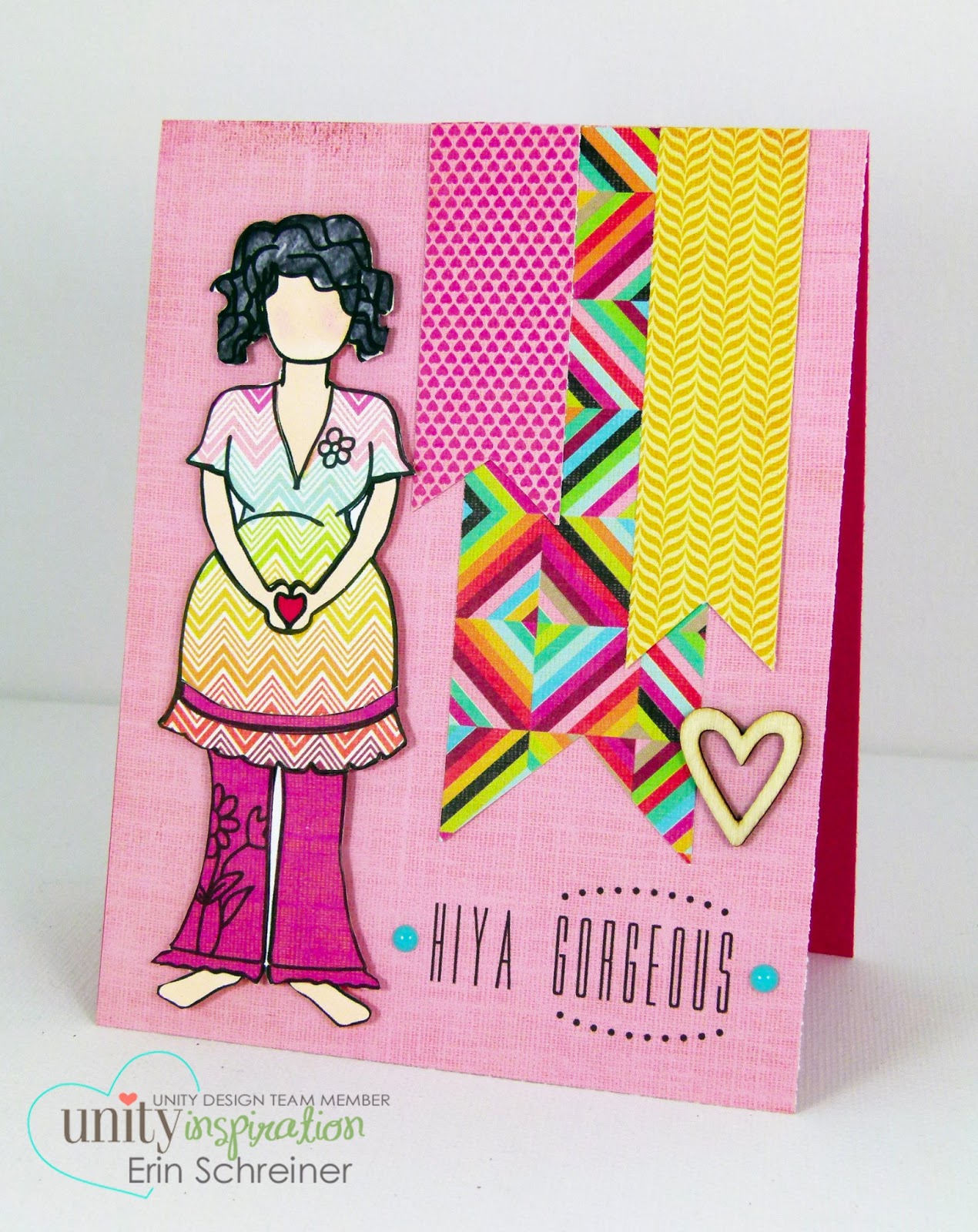 Hellllllllooooooooo lovely girls! This Thursday at Unity, we are celebrating GIRLS and having FUN. Unity Artistas Angie and Tracy have come up with some amazing girls to color and ink to your little heart's desires. I've created a few samples to show them off. By the way, did I happen to mention I'm on the Unity Design Team to stay, like permanently? Like for good? Well, I am!! :) :) :) Hooray!