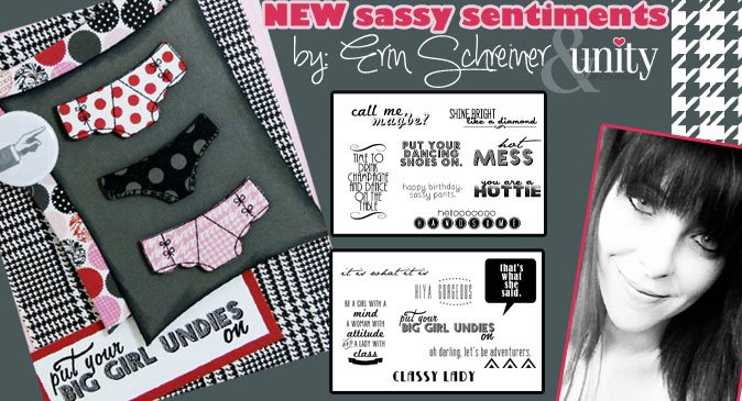 And last, but not least, I have more exciting news to share....I'm now a Unity Artista!!!! I have designed some sassy sentiments for all the sassy stampers out there that need to stamp some sass into their lives. {The world just doesn't have enough sass yet, wouldn't you agree?} So without further ado....