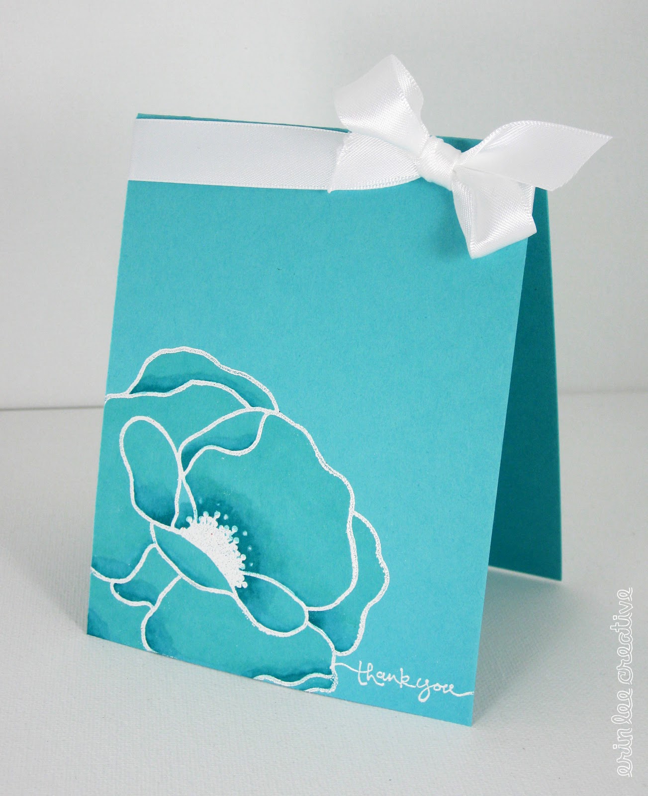 For this CAS (casual and simple) card, I used Papertrey Ink's Hawaiian Shores cardstock, Unity Stamp Co Donna Poppies (LOVE this stamp set so much) a SU sentiment stamp and white embossing powder. I also shaded the poppy to give it some dimension with my Promarkers.