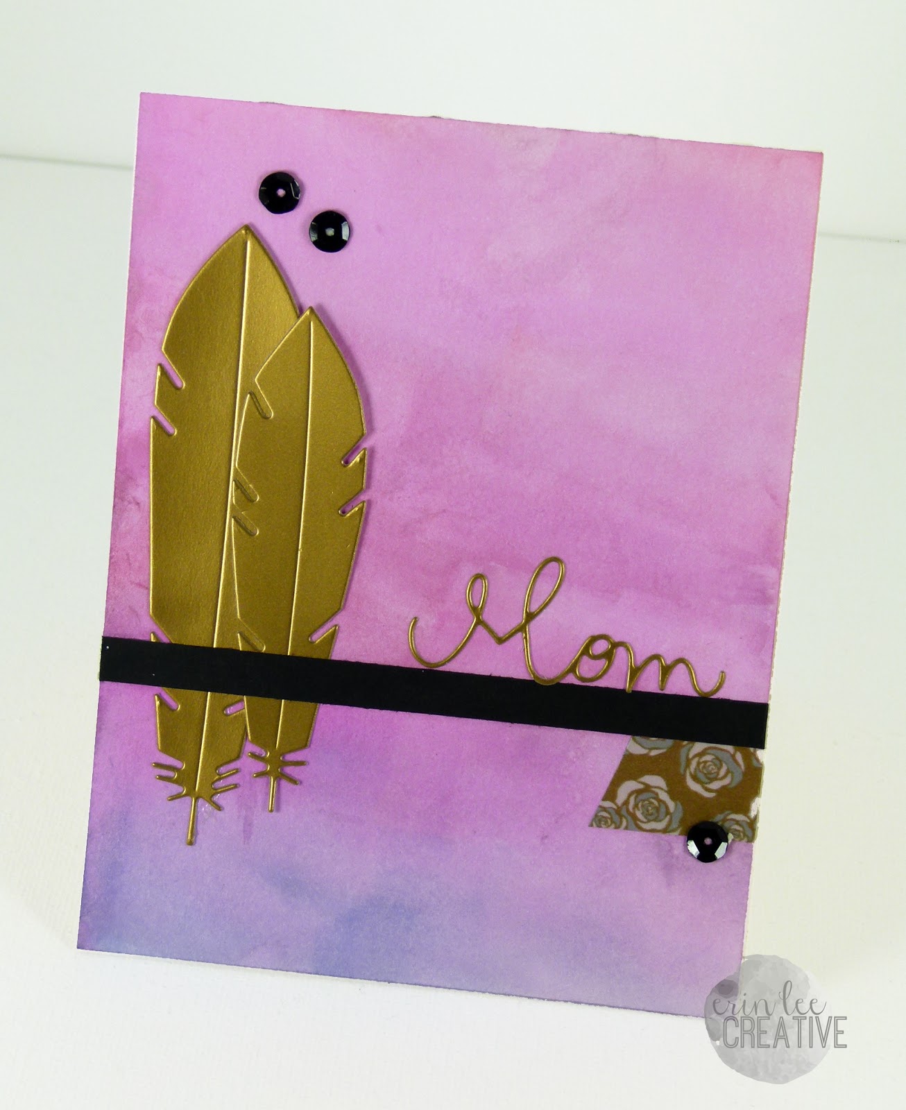 I used the color wash background technique. Mine didn't come out as light, but I usually go bold anyway. I decided to do a Mother's Day card so I could get those out in the mail asap! The feather dies are from My Favorite Things, the Mom die is from Simon Says Stamp.