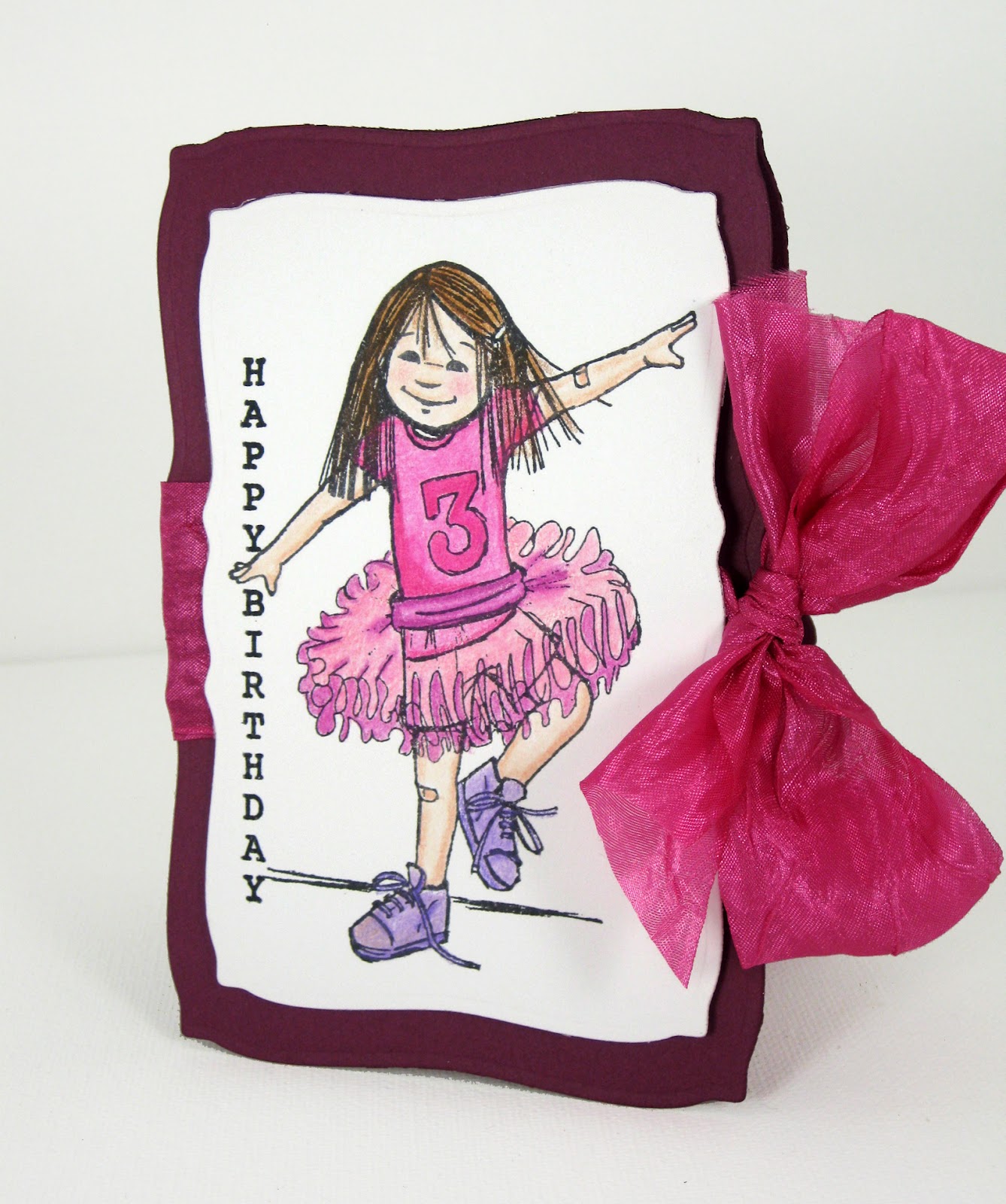Hello and welcome to my bloggy blog! I am going to be posting {hopefully} a few cards today in honor of World Card Making Day. I am playing along today with Unity Stamp Company's challenges. So fun, join in if you can! The first challenge is to create a shaped card. Here is mine. I used my Spellbinder Nestabilities to create the card base and Unity's Phyllis Harris co-branded stamps. I just LOVE coloring in her sweet images. {Hint hint: They are actually running a sale right now on these gems.}