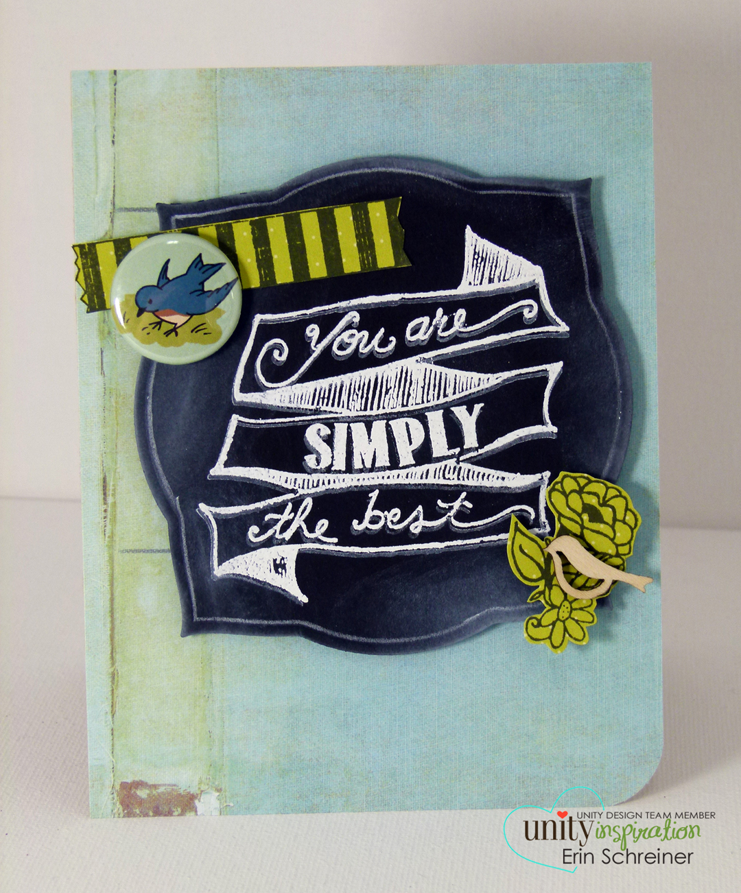 For my card today, I used the current Kit of the Month, You Are Simply The Best. LOVE this banner sentiment a whole lot and of course I did the chalkboard technique with it. Super easy, super cool looking.