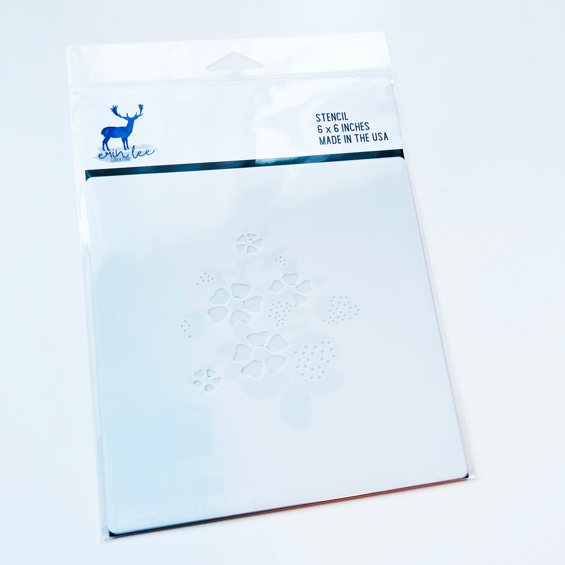 4 layer 6x6 stencil featuring a beautiful strawberry plant with blooming flowers. Use it as a singular image or a background stenciled multiple times.