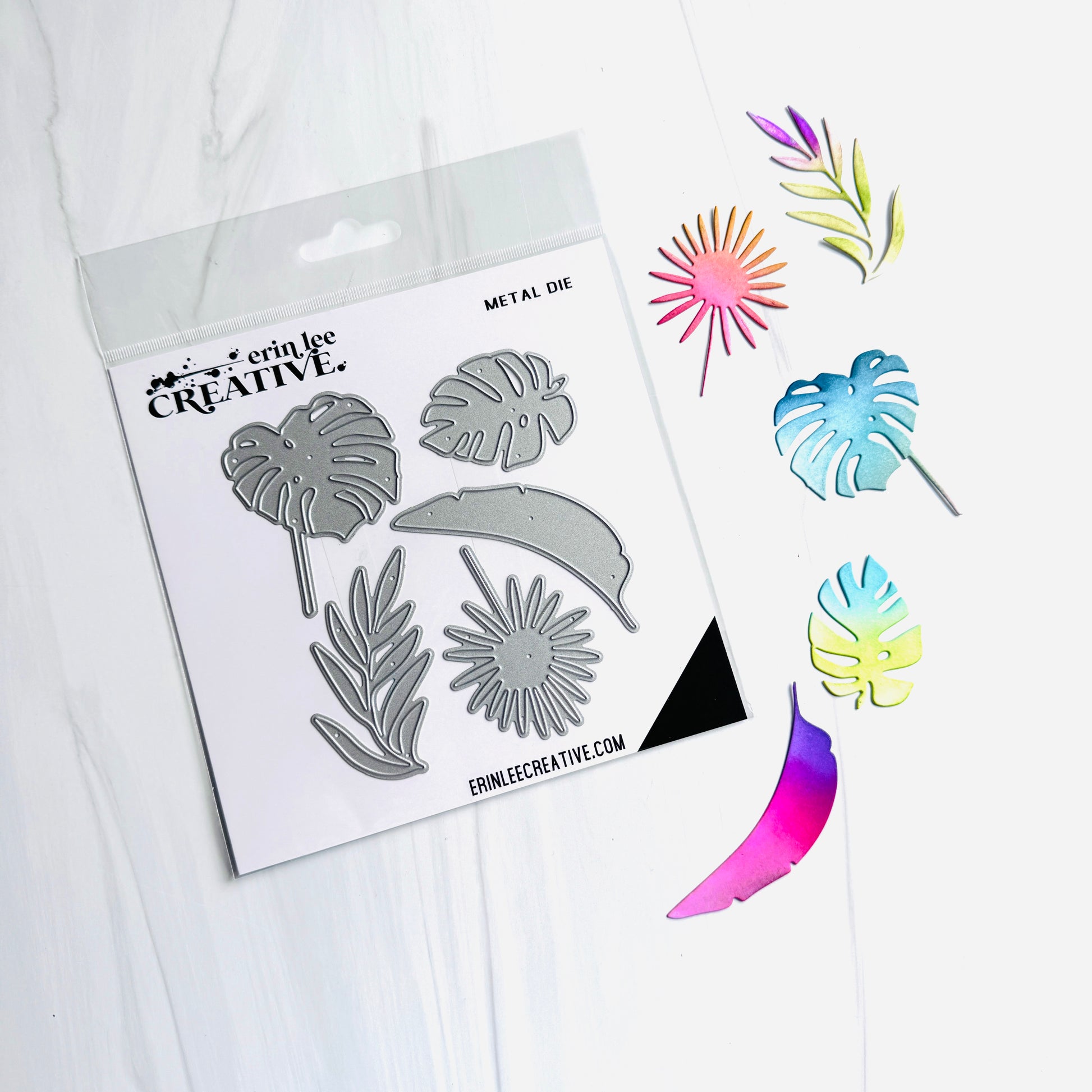 This tropical leaves die set is a great little set for all your summer cards! Mix and match these leaves with ink blending, colored cardstock or alcohol inks - the possibilities are endless!